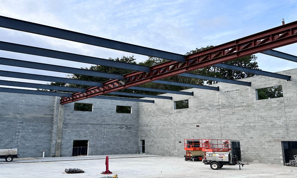 2. The post-COVID construction landscape saw fluctuating costs and shortages, notably with open web steel joists, our initial choice for spanning the gymnasium. A101, an architectural firm renowned for its innovative and sustainable designs, decided to bring in 29E6 to help tackle these issues. Working closely together, we discovered creative solutions to overcome these unique challenges.