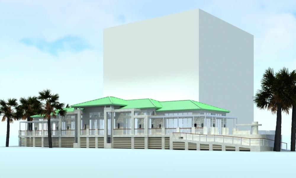 We developed a structural system centered around steel moment frames to achieve the required long, unobstructed spans while providing robust lateral resistance to hurricane wind loads. The use of moment frames eliminated the need for diagonal bracing, preserving clear sightlines and maximizing flexibility for event configurations. Oversized NanaWall door systems were integrated into the frame geometry, allowing the pavilion to operate as either a completely open-air venue or a fully enclosed, climate-controlled space. The foundation utilized deep driven piles to achieve adequate bearing capacity and resist uplift forces, while reinforced concrete grade beams and pile caps tied the system together for uniform load distribution. Detailing at the foundation level included scour protection measures to safeguard against erosion during storm events.